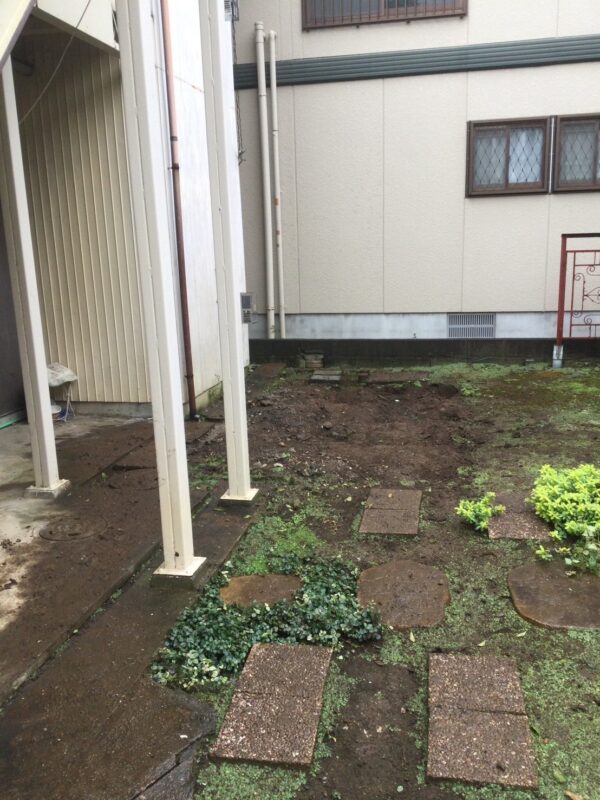 庭先の大きな物置と樹木伐採撤去