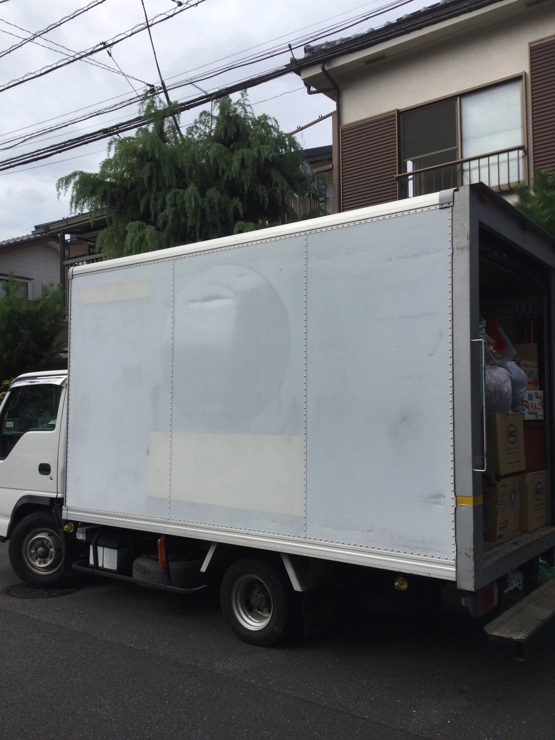 2tロングトラック 2台 2tトラック 2台 計4台 8人作業